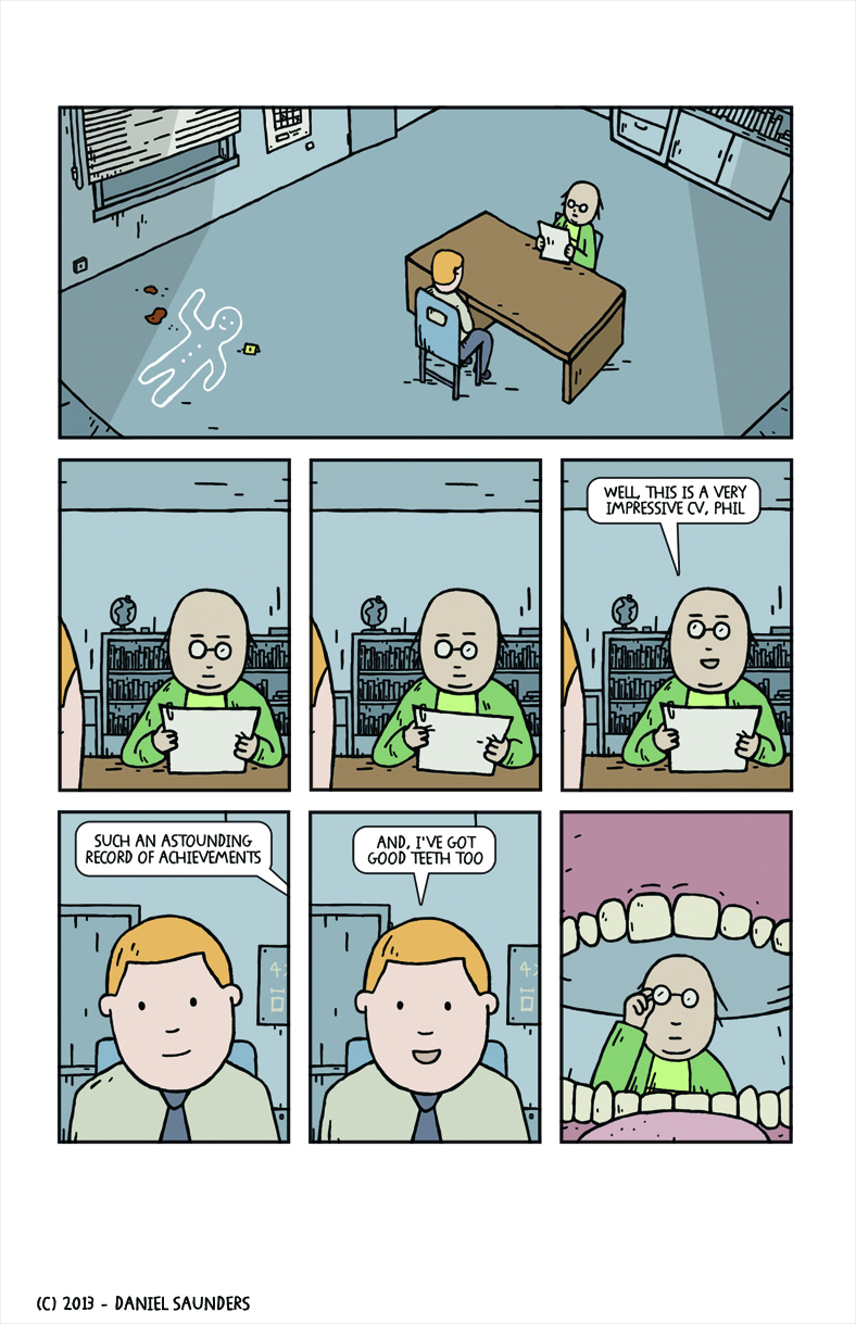Daniel Saunders is a Graphic Novelist and Alternative Therapist based in the UK. His humorous and thought-provoking style often explores complex themes such as life, death, creativity, justice, education, and religion.