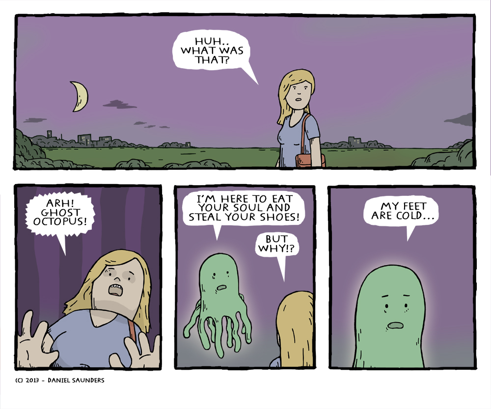 Yeah, I’m thinking of going as some sort of Ghost Octopus for Halloween. It’s a good excuse to go around and steal people’s shoes anyway. And thanks! I’ll certainly keep the comics coming!