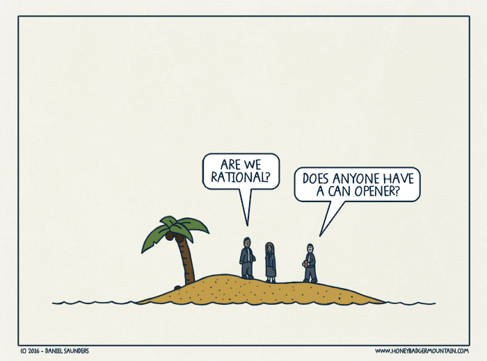 My response: It quickly became clear that a global economy based on constant growth was a time bomb. A financial crisis was inevitable. Perhaps of all the variables, human nature was the most terrifying. People are often irrational and likely to panic in times of uncertainty. I’ve tried to express this idea with a depiction of three people trapped on a desert island with very limited resources…