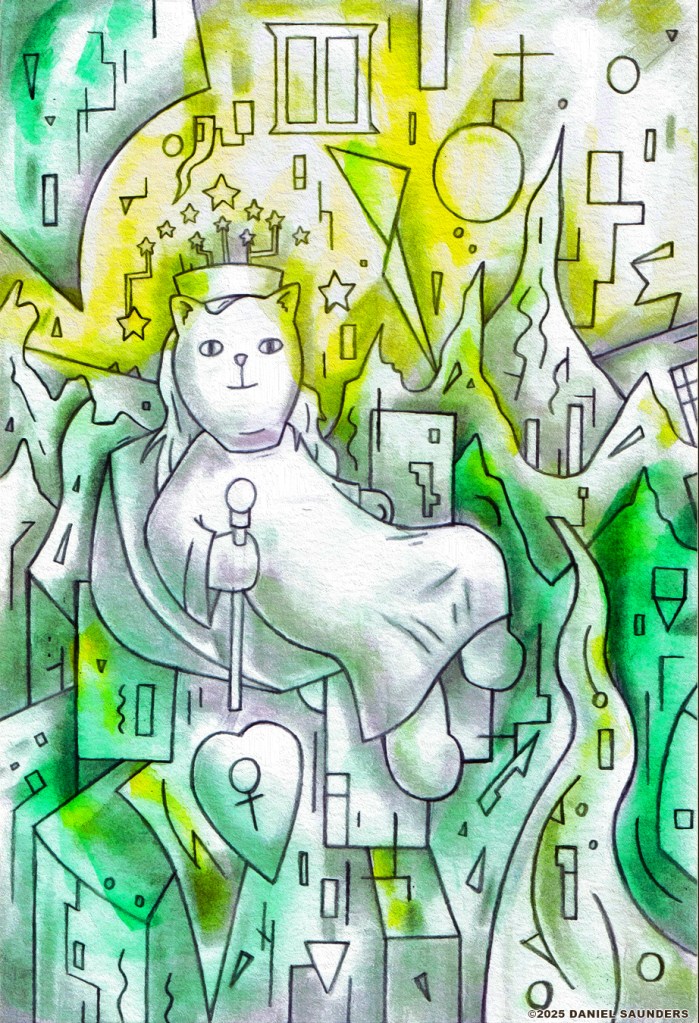I’ve always loved drawing Moo. He had a brilliant sense of humour when he was here with us, and that same mischievous charm continues to shine through in these artworks. Across this deck, you’ll see Moo embodying a wide spectrum of archetypes and energies. Sometimes he appears as the Fool, leaping into the unknown. Other times, he’s the Hermit, the Empress, the enlightened being—or even the shadow.
