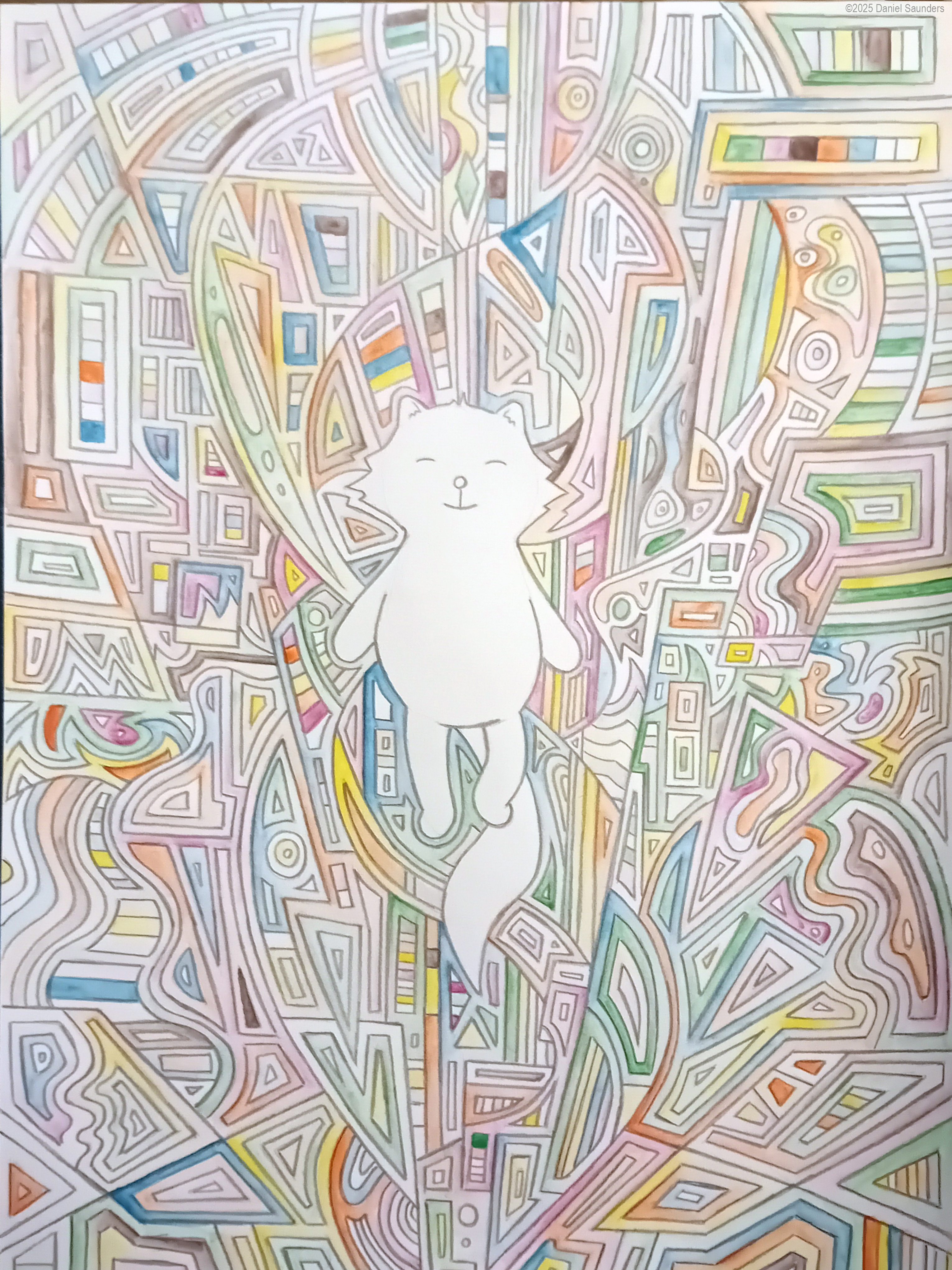 Moo continues to mentor me through our connection, guiding the creative process with his playfulness. His presence is woven into every illustration, and this deck wouldn’t exist without him.